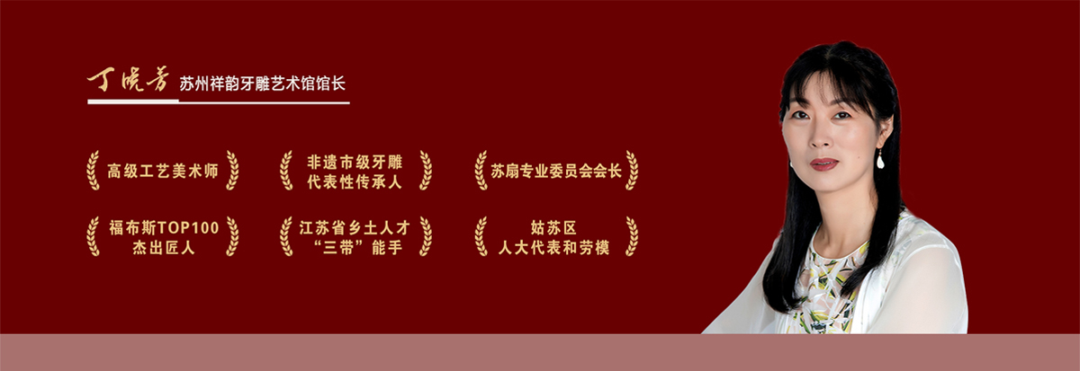 苏州祥韵牙雕艺术馆、苏州祥韵牙雕有限公司,长期以来一直致力于弘扬民族文化,传承苏派牙雕,是省级非遗保护单位,曾是苏州大市范围内唯一一家,经国家林业局,国家工商行政管理局批准的《象牙指定加工场所》《象牙制品指定销售场所》两证齐全的公司。在丁晓芳馆长的带领下,大家共同努力,让几近失传的苏派牙雕技艺得以继承和发展。我们集众家之长,与时俱进,锐意进取,不断创新,精雕细琢,创作出形式多样,品类众多的牙雕作品,作品屡获大奖。二O一七年年底,为执行国务院文件精神,我们不再制作销售象牙制品。为使广大市民能够欣赏到精美的牙雕作品,苏州祥韵牙雕艺术馆免费向广大市民开放,展示牙雕技艺。为使牙雕这门传统的技艺得以传承下去,公司运用猛犸象牙来进行牙雕艺术的创作,让传统的牙雕艺术焕发新的光彩,承担起非遗单位和非遗传承人应尽的社会责任。